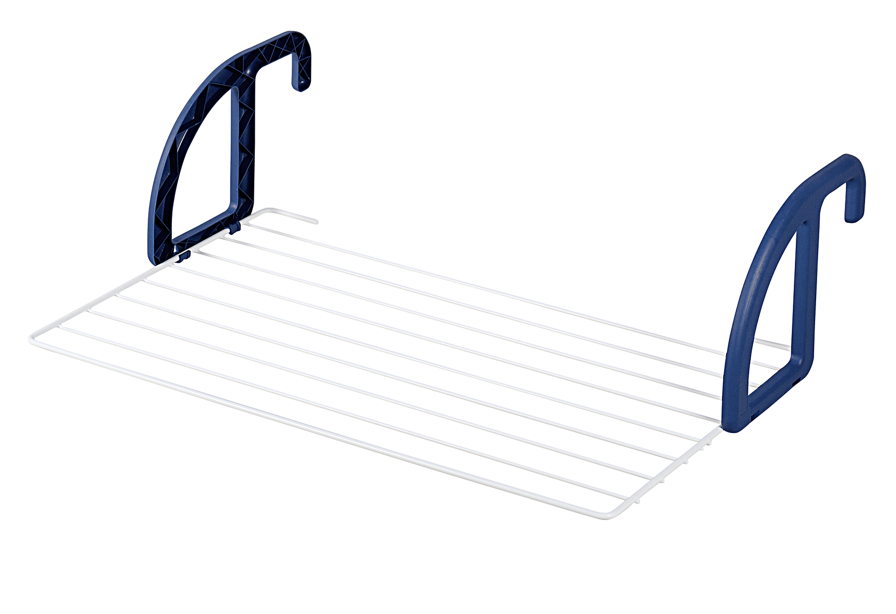 Platzsparende Aufhängung für Balkon. Stufenlos verstellbare Befestigungsbreite. Wetterfeste Trockenstäbe mit Antislip-Ummantelung. Trocknerlänge 7 Meter.